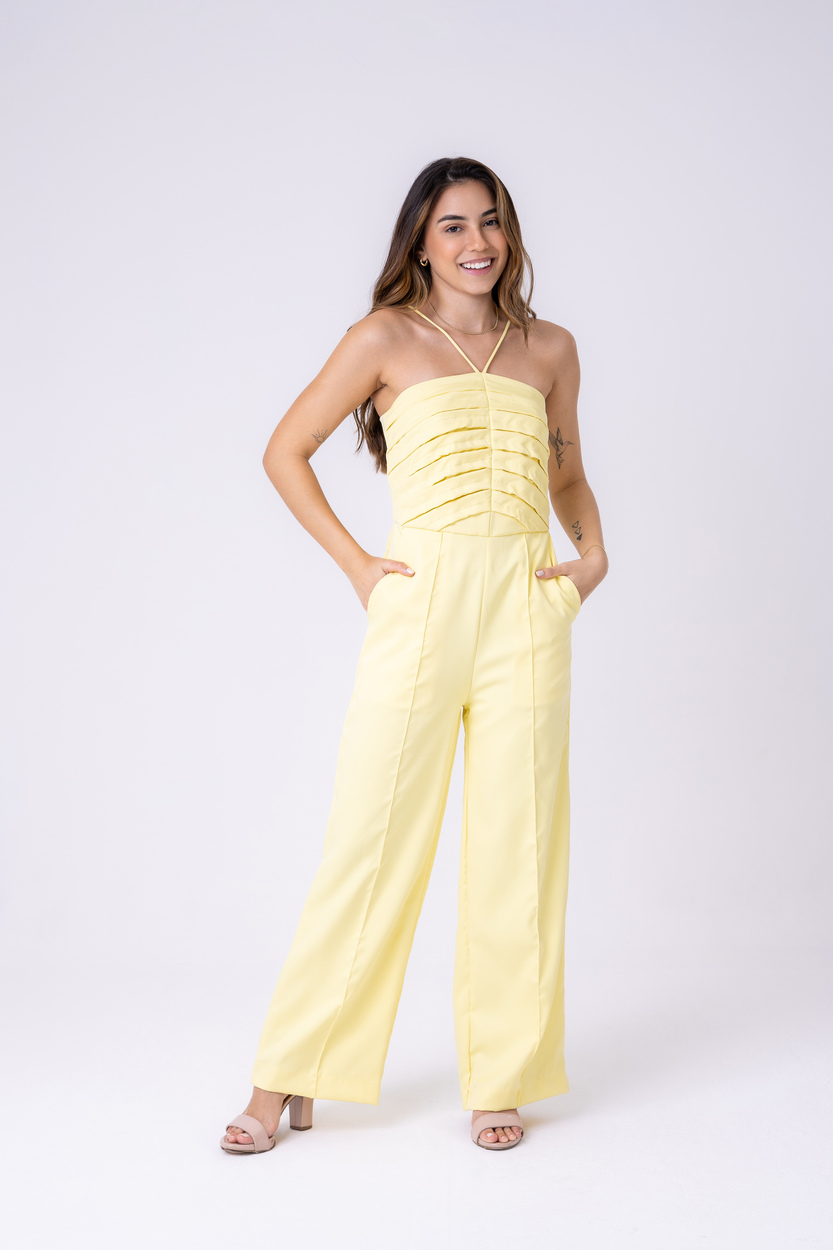 Macacão longo em alfaiataria com detalhes de pregas .Sofisticado e confortável.